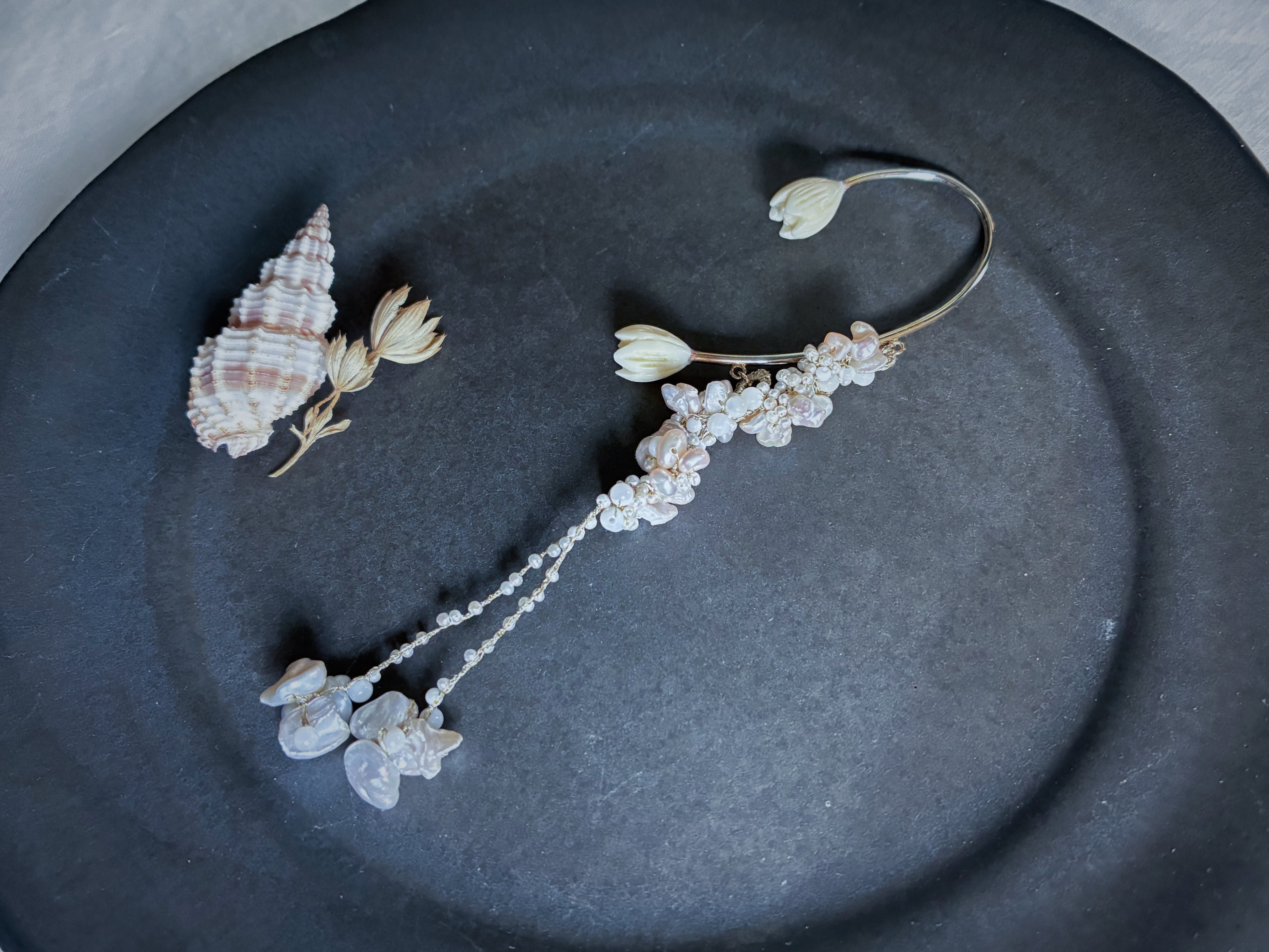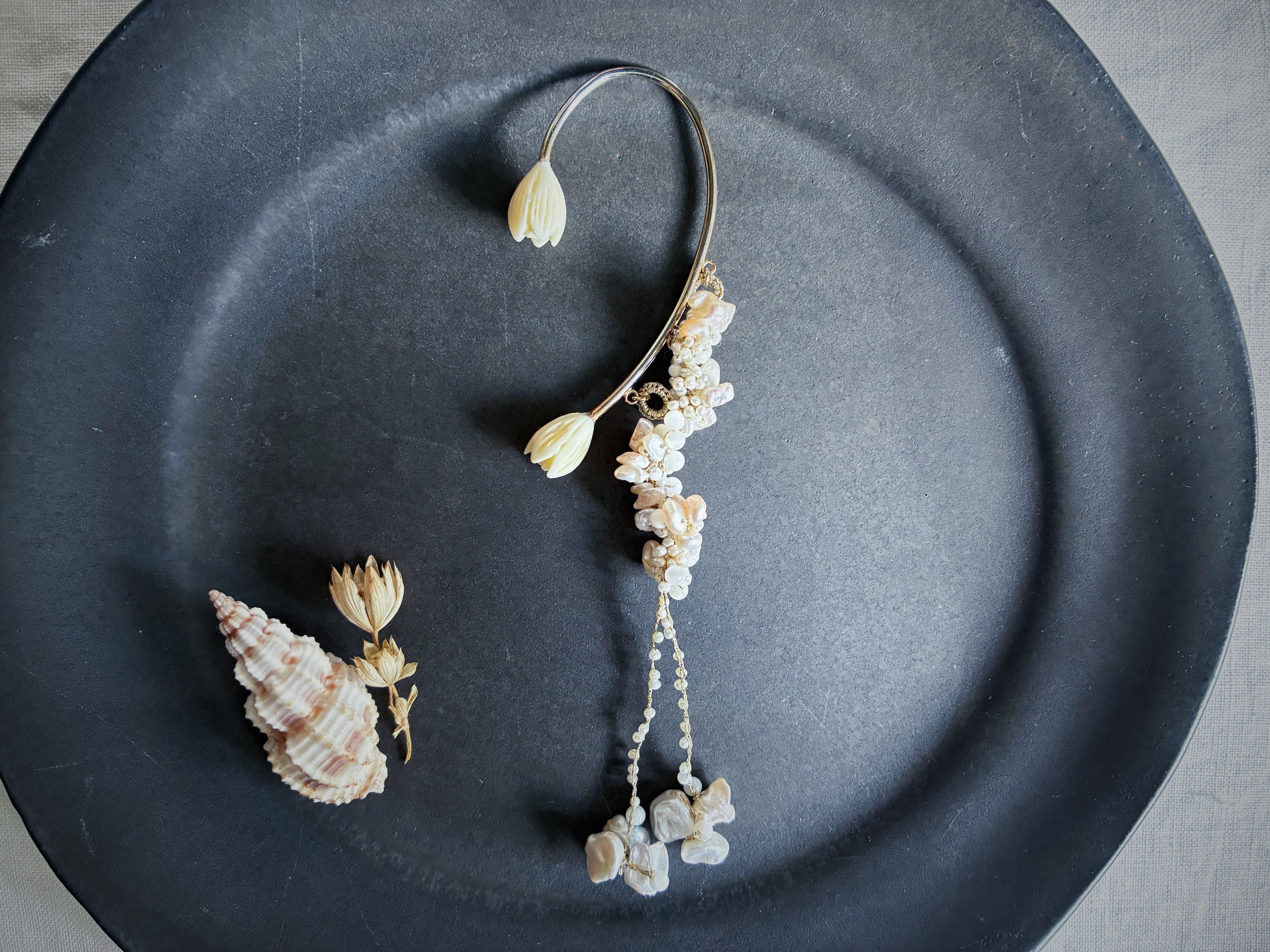 素材:淡水パール、マザーオブパール、樹脂、真鍮